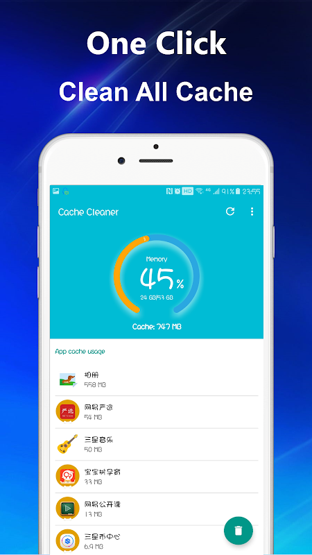 Cache Cleaner - простой и простой менеджер кэшей для устройств Android. Он может очищать кеш, освобождать место для хранения, повышать скорость и производительность моего телефона! Кроме того, очиститель мощности может ускорить работу вашего устройства, когда вы играете в игры. И вы НЕ ДОЛЖНЫ ОБРАТИТЬСЯ своим телефоном нашим инструментом кеширования!