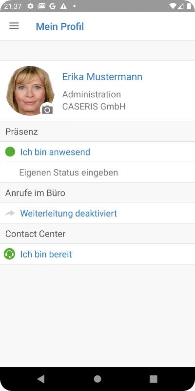 С помощью приложения CAESAR2GO пользователь CAESAR может подключиться к существующей инфраструктуре CAESAR своей компании через свое мобильное устройство, независимо от местоположения. Тогда ему станут доступны функции присутствия, чата, доступа к адресным книгам компании и функция Follow Me.