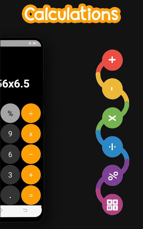Нет необходимости загружать неточные и сложные приложения-калькуляторы, так как этот калькулятор для Android - идеальный выбор для начинающих и даже опытных пользователей. Выполняйте быстрые вычисления с помощью процентного калькулятора, сложения, вычитания, умножения, деления и многих других функций.