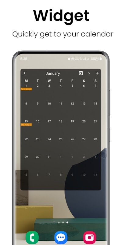 Интуитивно понятный интерфейс: легко перемещайтесь по календарю благодаря чистому и удобному дизайну. Проведите пальцем, сведите и коснитесь своего дня.