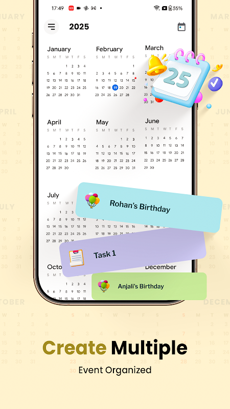 Загрузите сейчас и легко контролируйте свое время с помощью нашего приложения-календаря на 2025 год.:date: В современном быстро меняющемся мире оставаться организованным имеет решающее значение для личного и профессионального успеха. Надежное приложение-календарь может стать вашим идеальным помощником, помогая вам легко управлять событиями, ставить цели и планировать задачи. Представляем «Управление событиями — ваш личный органайзер», многофункциональное программное обеспечение-календарь, предназначенное для оптимизации вашего ежедневного расписания, держать вас в курсе важных событий и повышать производительность. Независимо от того, являетесь ли вы студентом, профессионалом или домохозяйкой, этот умный планировщик создан с учетом ваших уникальных потребностей в планировании. С нашим лучшим приложением общего календаря вы можете легко координировать свои действия с коллегами, семьей или друзьями. : блестит
