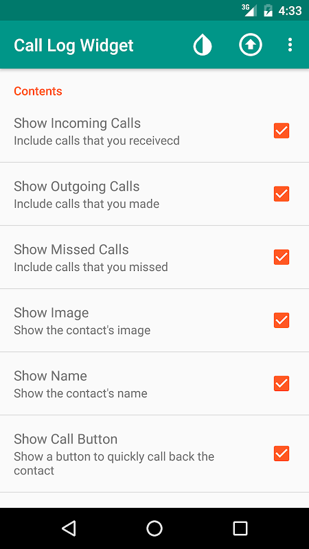 Complete customization. Include any combination of missed calls, incoming calls, or outgoing calls. Plus, you can personalize the widget with your own color and style.