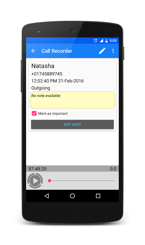 • Please note that some handset does not support “Call Recording” functionality. It’s the recording API/driver problem of the manufacturer of the handset. If you are facing such kind of problem, at first try different "Audio Source" from "Settings". If none of them works for you let us know about your handset model by send a mail, so that we can make a list of unsupported device (https://docs.google.com/document/d/1KEyMjz8jNgh62kY3a4onGYWrCfyd-p6e7fCThqlpBz0/edit?usp=sharing). PLEASE DO NOT GIVE BAD RATING OR REVIEW FOR THIS UNEXPECTED PROBLEM. If you are facing problem of low voice of other party, then we have a trick for you, turn on loudspeaker while talking. Please give us feedback about any kind of improvement of our product.