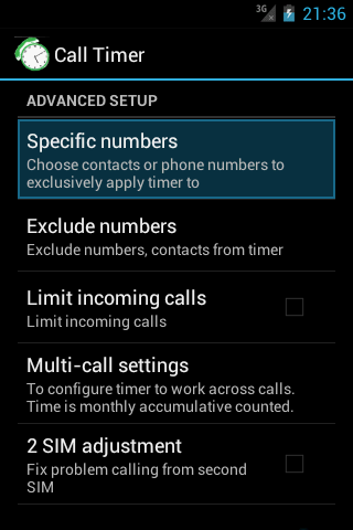 5/ Таймер может начинать считать либо при ответе на вызов, либо после набора номера. Имеется возможность изменять время запуска таймера. Пожалуйста, обратите внимание, что некоторые телефоны и версии Android (особенно, Android 4.1.2 и выше), не поддерживают запуск таймера при ответе на вызов. В этом случае вам необходимо настроить таймер на запуск ПОСЛЕ НАБОРА для работы приложения.