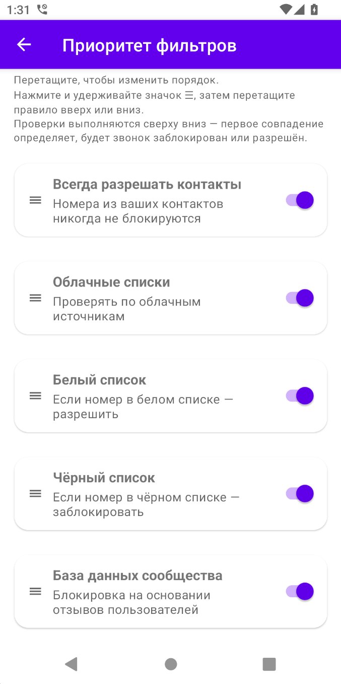 Фильтр Звонков - простое и эффективное приложение, которое блокирует нежелательные звонки. Оно бесплатное, без рекламы и не собирает и не передаёт ваши персональные данные.
