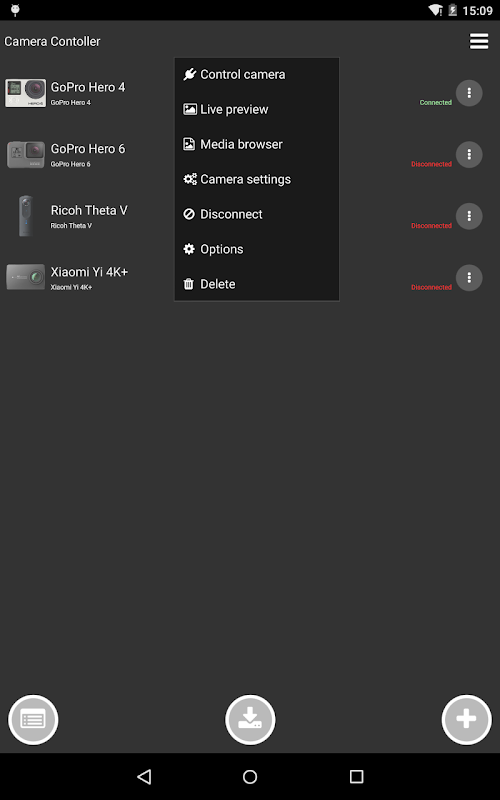 Приложение Camera Controller управляет такими камерами, как GoPro Hero, Xiaomi Yi и Ricoh Theta.