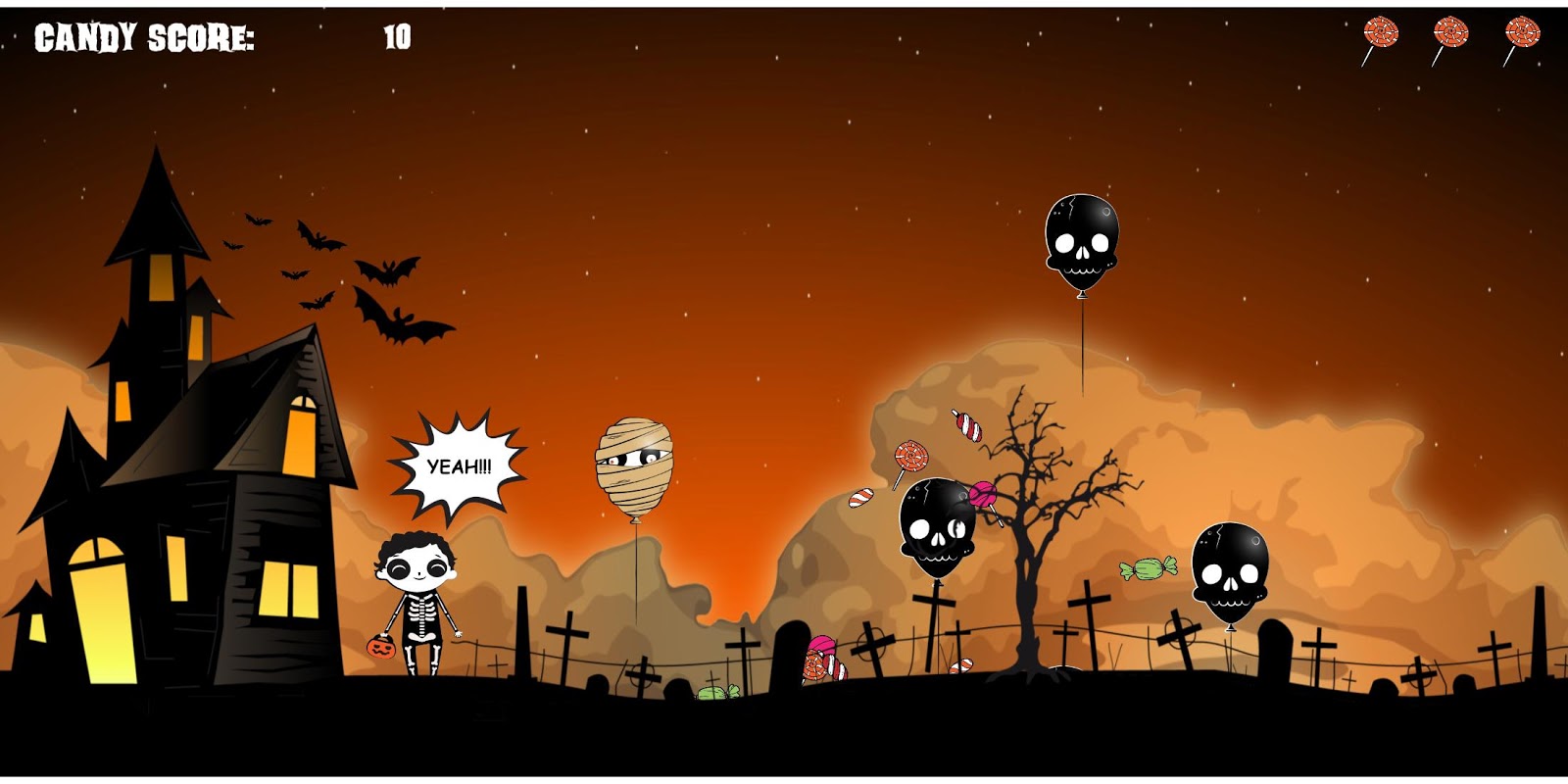 If you lose a balloon, your score will downgrade of 10 candy points.