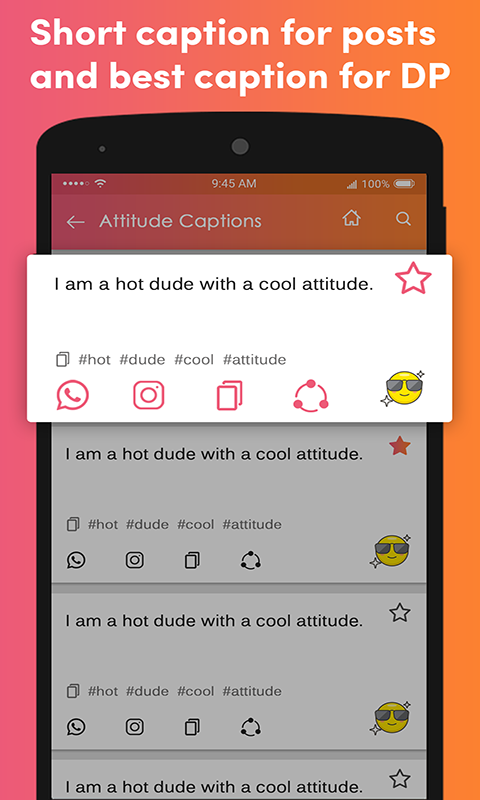 Easily select -copy & paste the best captions you want to share with your friends or on your social media profiles.