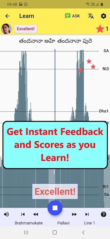 Изучайте и пойте песни Карнатика с мгновенной обратной связью/обратной связью с репетитором, караоке и шрути!