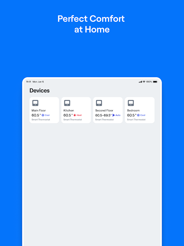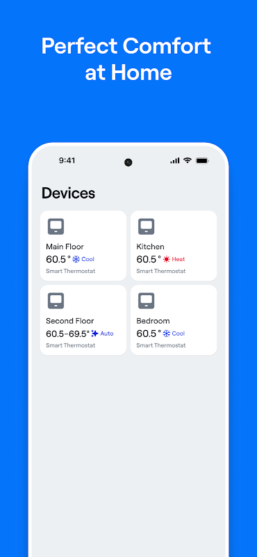 Управляйте своей домашний уют, где бы вы бродят с подключением Wi-Fi® для вашего смартфона, планшета или рабочего стола. Это приложение позволяет легко изменить температуру, обновите ваш график, и поддерживать контроль вашего дома энергетической эффективности с прикосновением пальца.