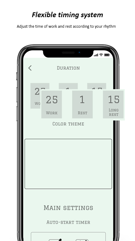 The application uses the tomato method - 25 minutes of work and 5 minutes of rest. With this technique, you will improve the efficiency of the workflow