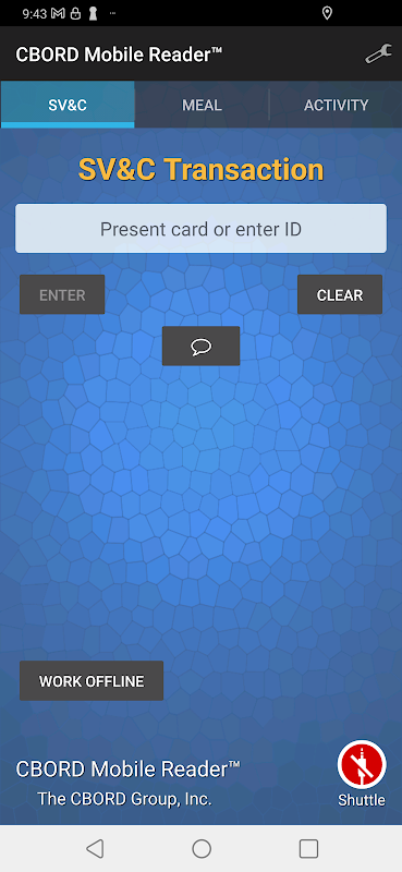 CBORD Mobile Reader — это приложение, предназначенное для считывания идентификационных карт университетского городка и выполнения SV&C, приема пищи, действий и других транзакций прямо с вашего собственного устройства Android. Это приложение предназначено для пользователей CBORD, которым необходимо мобильное устройство для чтения карт.