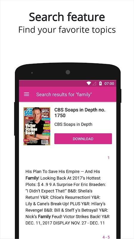CBS Soaps In Depth is THE magazine for fans of "The Young & the Restless" and "The Bold & the Beautiful," providing more coverage of those sudsers than any other magazine out there! Exclusive previews, insightful recaps, revealing interviews, private photos --- CBS Soaps In Depth has it all! Plus, our "Days of Our Lives" bonus section keeps you up to date on all the latest goings-on in Salem and our primetime features shine a spotlight on the evening soaps, like "Scandal" and "Revenge"!