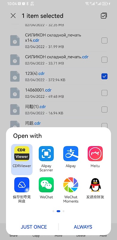 Откройте файл cdr напрямую в WhatsApp/Wechat и т. д.