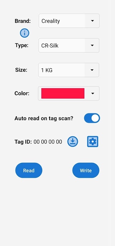 Простое приложение с открытым исходным кодом для программирования RFID-меток MiFare Classic 1k для определения типов нитей, используемых в 3D-принтерах Creality CFS и Creality RFID.