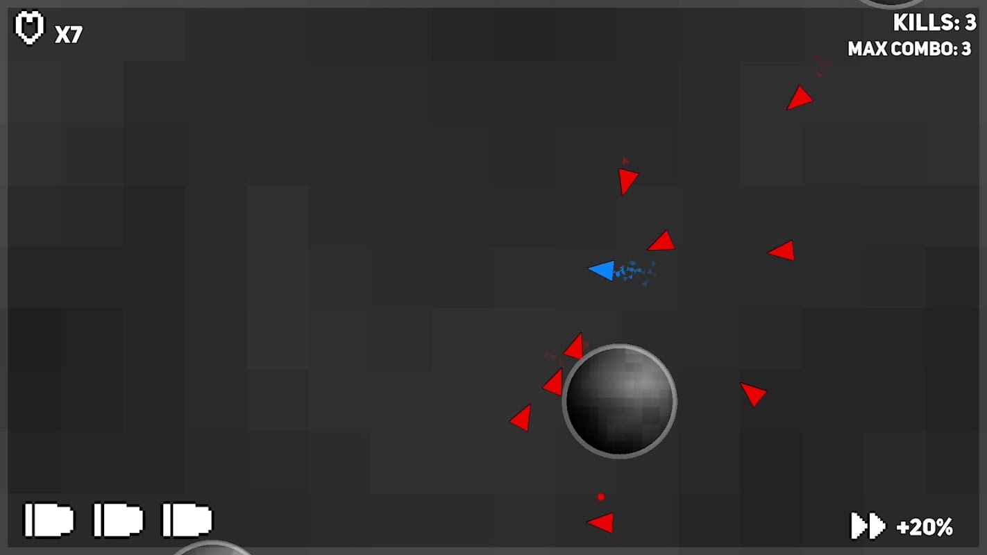 У вас есть космический эсминец Smart 4000. Это оружие, которое может стрелять пулями со встроенной системой искусственного интеллекта. ИИ понимает, кто движется, и нацеливается на ближайший движущийся объект. Однако вы, как владелец оружия, тоже можете двигаться и быть потенциальной целью, поэтому вам предстоит сотрудничать с ИИ, чтобы выжить как можно дольше!