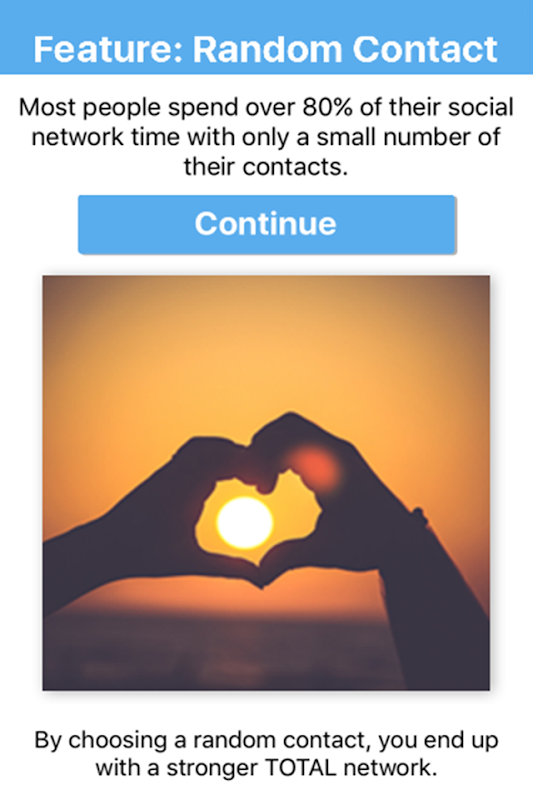 Finally, Chance Them can be used to strengthen a person's total network by acting as a sort of "soft" introduction for infrequent contacts. In other words, the app randomly picks a contact and can be used as a good way to start up a conversation that otherwise would not take place.