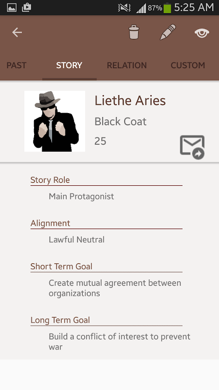 Характер Планировщик предназначен для писателя, которые связаны в создании игр, таких как RPG Maker или другой двигатель, книги, игры, и т.д., и всякие, кто хочет планируют создать историю с подробно Фон символа