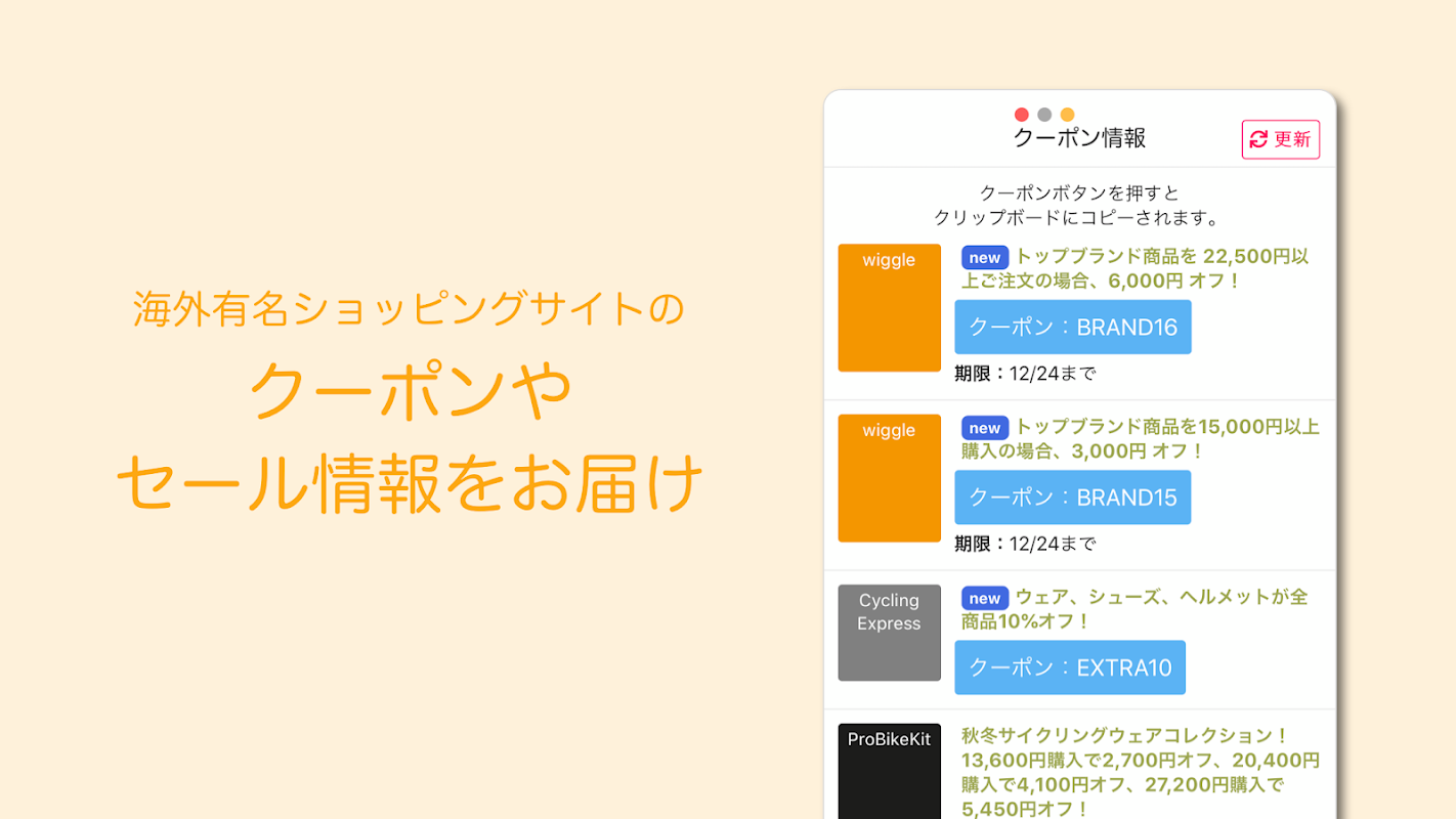 自転車本体・パーツ・ウェアなどをお得に購入できる海外・国内ショップのクーポン、セール、値下げ情報を毎日お届けしています。