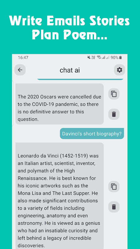 Вы также можете копировать ответы от чат-бота AI и быстро делиться ими.