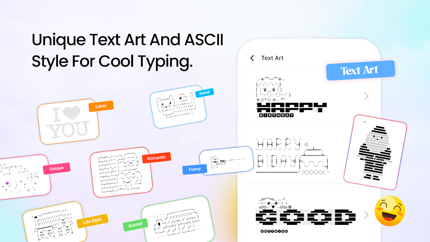 Приложение Chat Style Font Keyboard & Fancy Font — это крутой генератор текста и стильный создатель шрифтов или клавиатура с эмодзи.