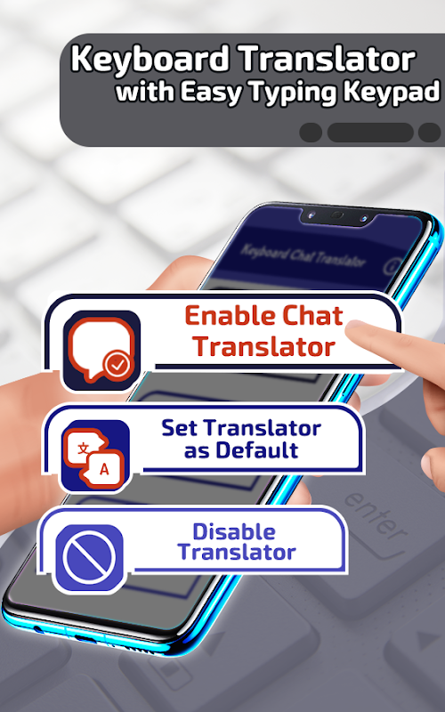 Chat translator keyboard helps to solve the problem of not knowing the language. Text Translator keyboard has the unique automatic chat translator function. Chat Translator will use your phone's Internet connection (Mobile data or Wifi) to send SMS messages to friends, family or business partners who cannot speak your native language. Text translator app helps you to overcome language barriers and comes with a live chat translator keyboard for you.