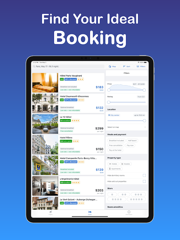 Это приложение для бронирования отелей — очень эффективный и простой способ найти лучшие предложения по бронированию кроватей, которые сэкономят вам много денег. С этим дешевым гостиничным приложением вы найдете тысячи предложений по предварительному бронированию отелей, апартаментов и вилл с огромной экономией, без платы за бронирование и с гарантией лучшей цены.