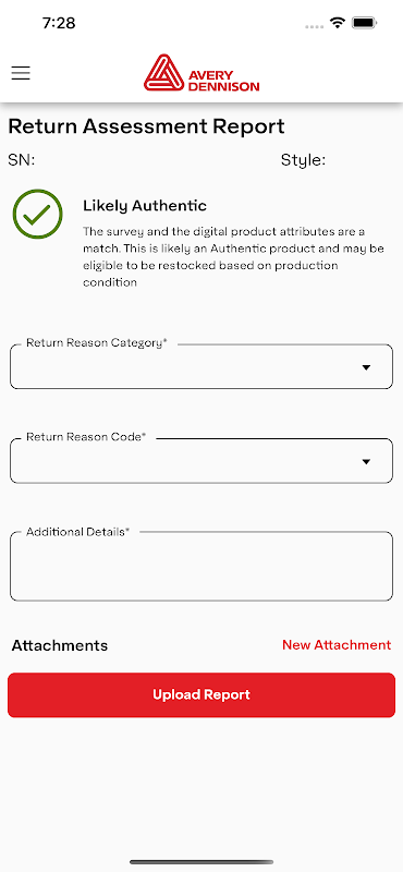 Check — многопользовательская платформа, разработанная Службой информации о розничных брендах Avery Dennison (RBIS) в качестве решения, которое предоставляет брендам одежды и обуви по всему миру возможность проверять подлинность продуктов. Это приложение представляет собой решение для проверки подлинности возврата, используемое для проверки подлинности возвращаемого продукта. Процесс начинается со сканирования серийного номера возвращаемого продукта и отображения ограниченных атрибутов продукта, таких как завод, а также для помощи в определении любого мошенничества или контрафактной продукции, которая возвращается.