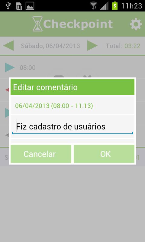 Com o Checkpoint você pode descrever e marcar o ínicio e fim de cada atividade que fizer, sabendo examente quanto tempo gasta nelas.
