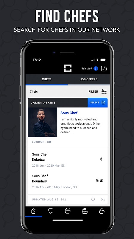Повара могут подать заявку на вакансию с помощью нескольких простых кликов; Ресторан будет уведомлен о том, что шеф-повар заинтересован в этой работе, и получит полное описание профиля и даты, когда шеф-повар будет доступен для ознакомления или собеседования.