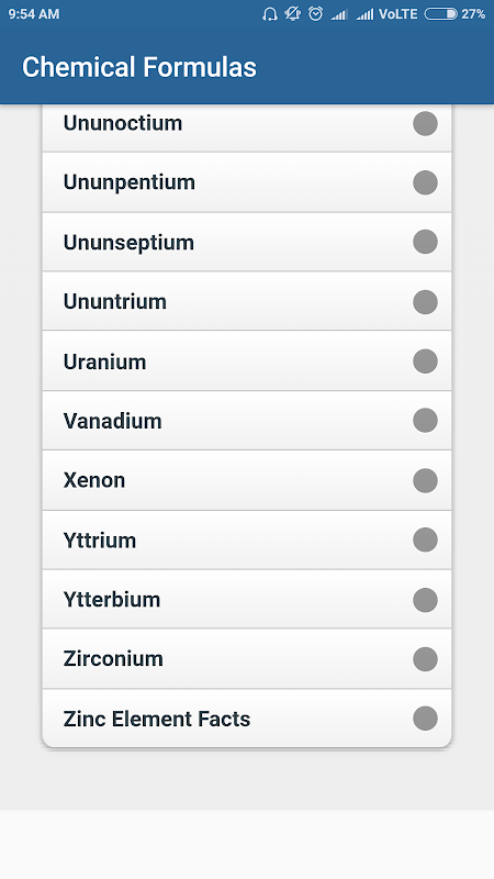 Chemical Formulas contains all important and useful Chemistry formulas. This application will be helpful for Chemistry exams as well as to get jobs.
