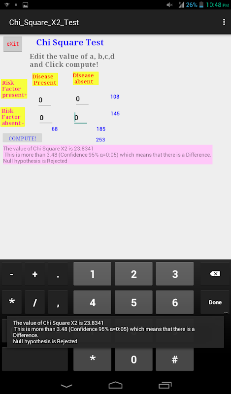 Chi square X2 Test 2x2 table 1.0.0.0.1