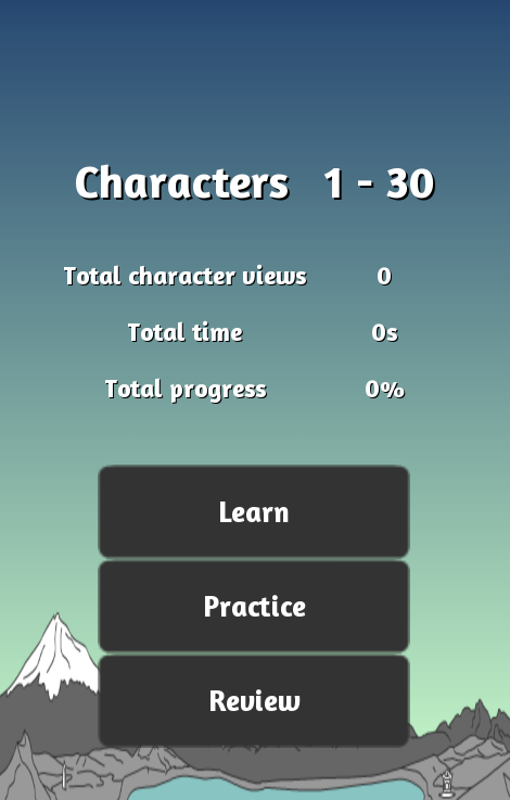 В этом режиме вы с характером и перевода, чтобы помнить. Тогда вы затем показали характер и несколько возможных переводов, и вы должны выбрать правильный английский перевод. Этот режим, как это происходит через все 30 знаков в каждом наборе.