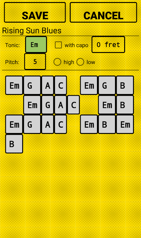 Вы можете добавить табулатуры песен, что переводчики часто, так что держите свои аккорды. И тогда вы можете настроить высоту песня, которая подходит вам более комфортно.