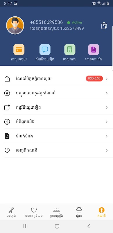 Chreang Banluy - ច្រៀងបានលុយ for earn money when you singing karaoke done per/song. The app created in Mar 22, 2021 by Apps Group KH.