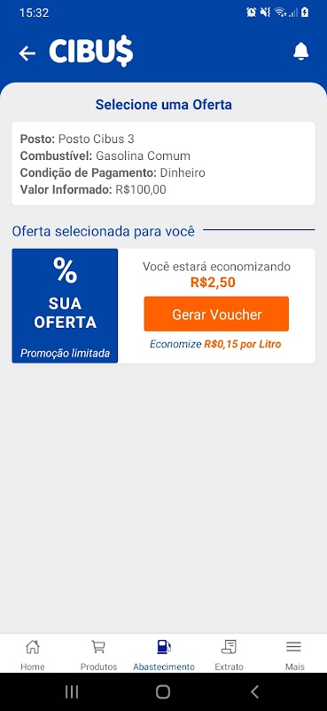 Cibus Teste é um aplicativo de fidelização que traz o benefício para você cliente conseguir abastecer com desconto no ato do abastecimento, além de poder acompanhar as diversas promoções, como produtos da conveniência e produtos para seu veículo. Através de voucher o app é integrado ao sistema de automação do posto deixando tudo mais simples e fácil para a gestão da empresa.