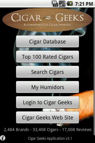Приложение Cigar Geeks предназначено для любителей сигар, которые заинтересованы в развитии своего сигарного хобби. Он поставляется с предустановленной поисковой базой данных более 51 000 сигар и более 32 000 обзоров сигар. Приложение может загрузить последние сигары и обзоры с веб-сайта Cigar Geeks по мере их обновления.