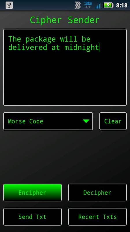 Cipher Sender allows you to easily send and receive coded messages with your friends! Whether you're looking for security, enjoyment, or education, Cipher Sender is the app for you. Plus, it's cross-platform, so you can send messages to your friends on iPhones too!
