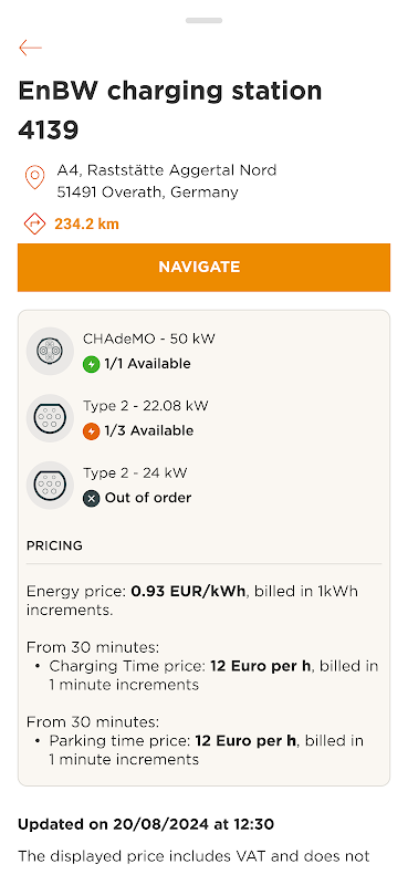 Хотите увидеть больше зарядных устройств? Активируйте свою карту флота и получите доступ к профессиональной карте — обратитесь к менеджеру своего автопарка, чтобы получить код доступа для приложения.