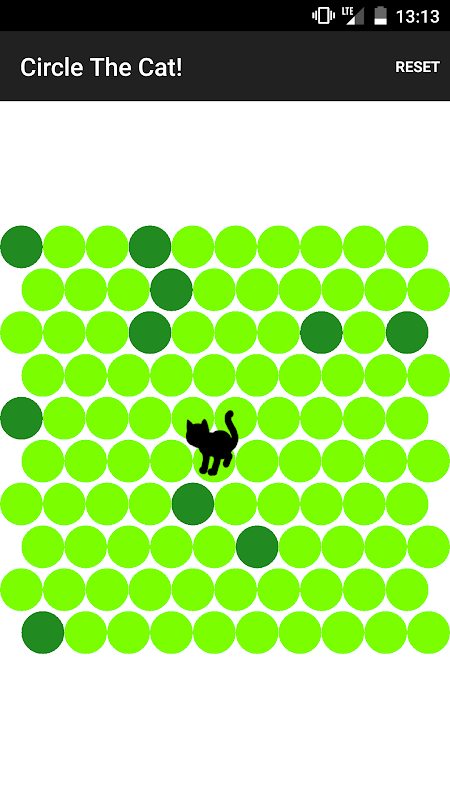 The objective of this puzzle game is to prevent the cat from escaping. You and the cat take turns alternately.
