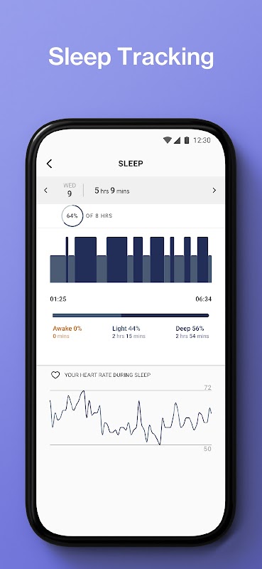 Простое сопряжение и настройка со смартфоном и совместимость с Android. Приложение подводит итоги вашей деятельности, включая шаги, сон, тренировки, калории и частоту сердечных сокращений.
