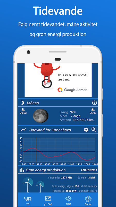 Вы можете получить сегодняшнюю погоду от DMI, нажав значок уведомления в приложении. Затем вы получаете текущую погоду в текстовом виде из DMI, где бы вы ни находились.