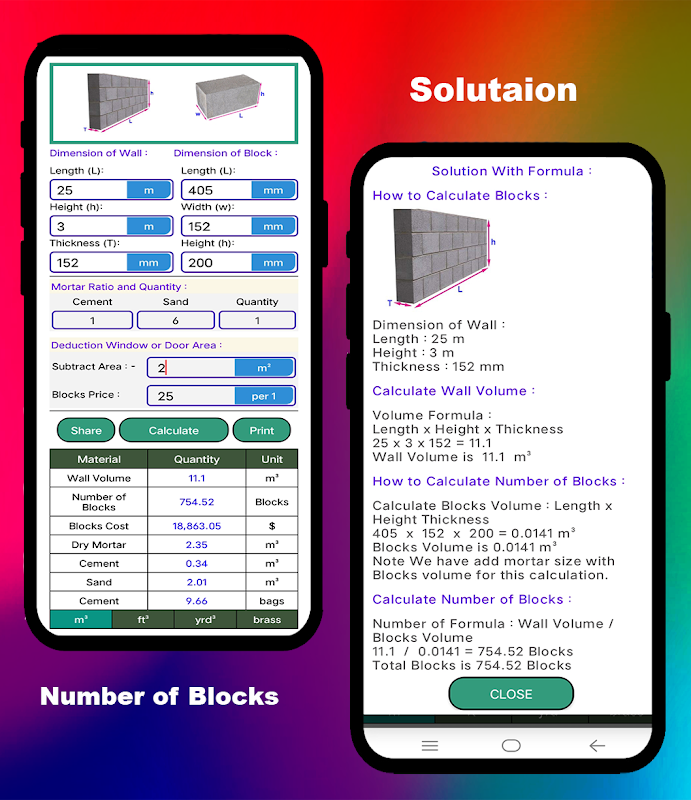 ✔ Возможность установить собственный размер кирпича и блока для подсчета кирпичей и блоков.