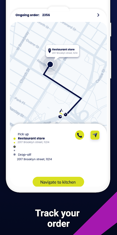 The app notifies you of any orders and provides GPS location to the kitchen, Scan you order and follow the delivery instruction