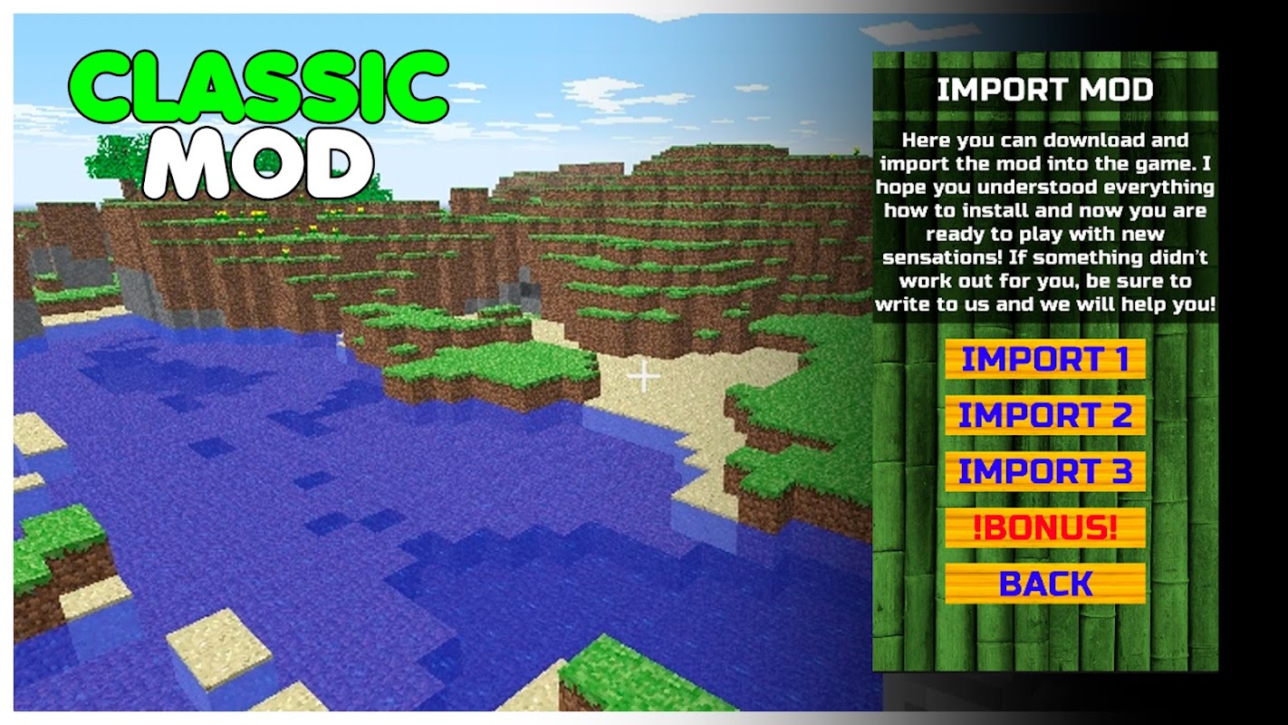 Classic Minecraft Mod for Minecraft PE will help you import addons into MCPE game