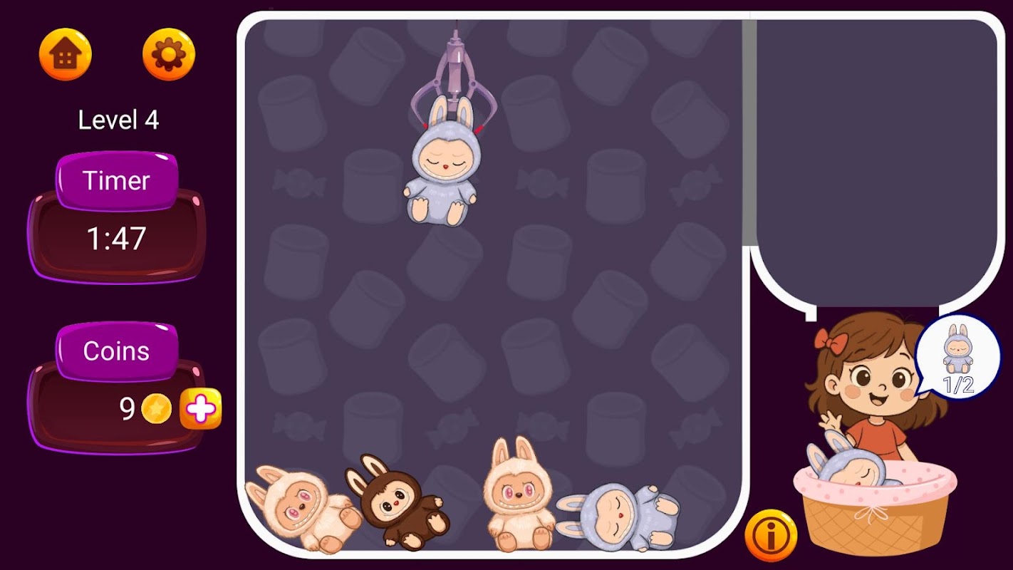 🎯 Запускай кран-машину – именно кран поможет тебе достать нужную лабубу для прохождения уровня!