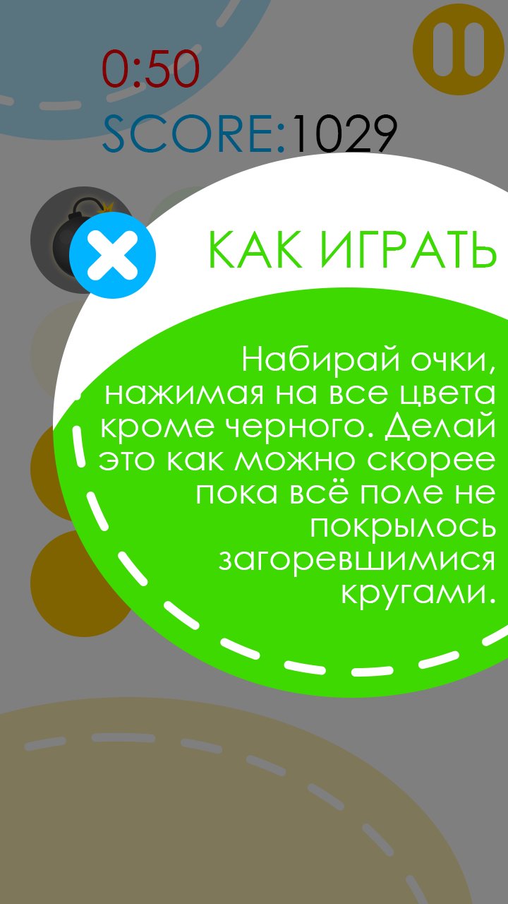 Игра представляет собой небольшой, но очень занимательный кликер. Проверьте ловкость пальцев кликайте по цветным кружкам.
