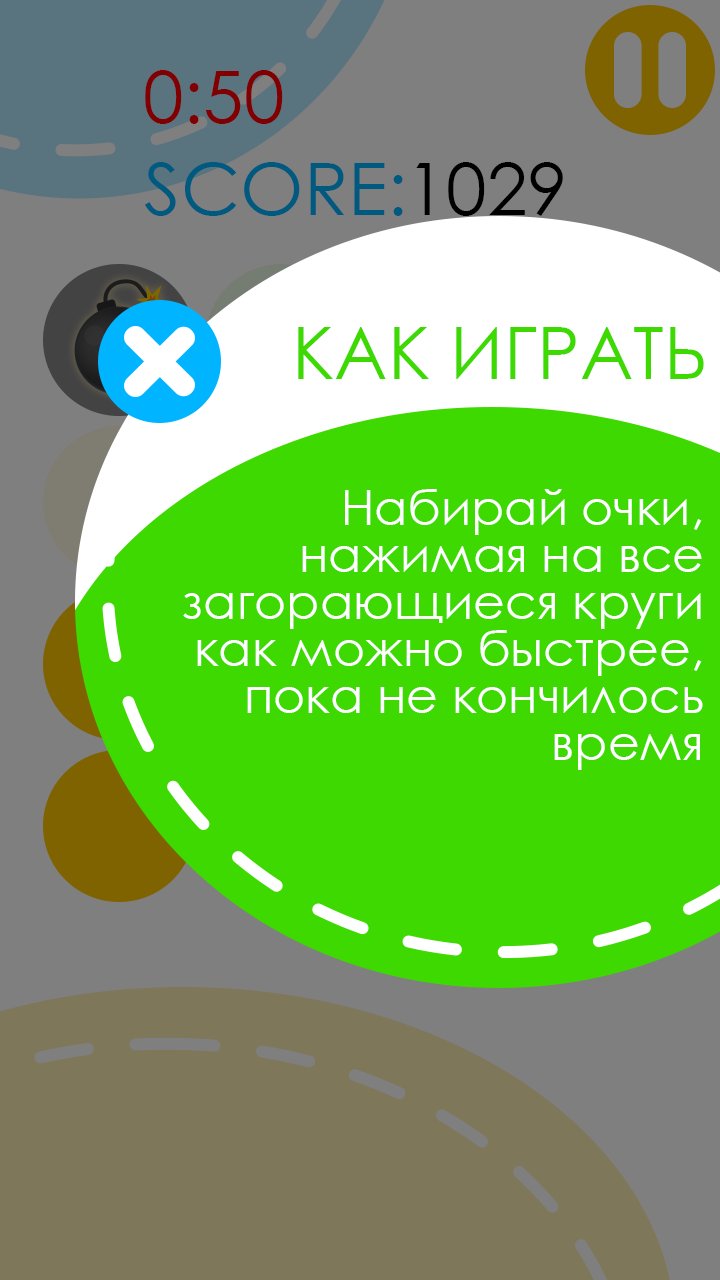 В игре на скорость цель игры нажимать на яркие круги один за другим как можно быстрее.