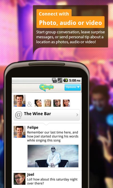 WORKS BEST FOR USA, UK, INDIA AND SINGAPORE. Coming soon across the globe! Join Clingle and discover an amazing new way to share your life's moments with friends and family. Clingle lets you - Check-in with style by adding a live video of the moment, discover thousands of popular places, deals and discounts in your locality or engage your friends by leaving surprise messages (with video, audio or photos) at various places in your city! Connecting with friends was never this fun and exploring your world was never this exciting!