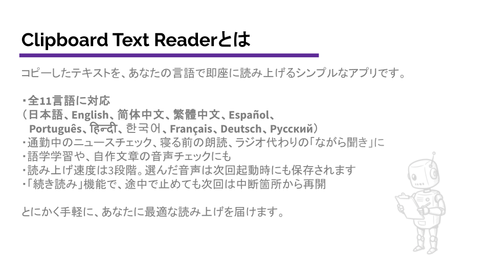 Oписание Clipboard Text Reader:超簡単に文字読上